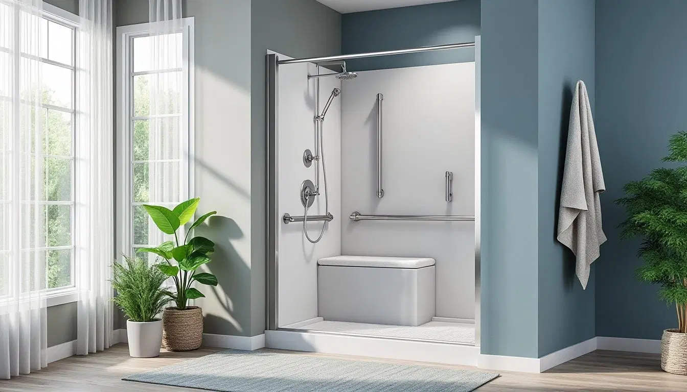 Sécurité et confort : barres de maintien, sol antidérapant et accès de plain-pied réduisent considérablement les risques de chute.